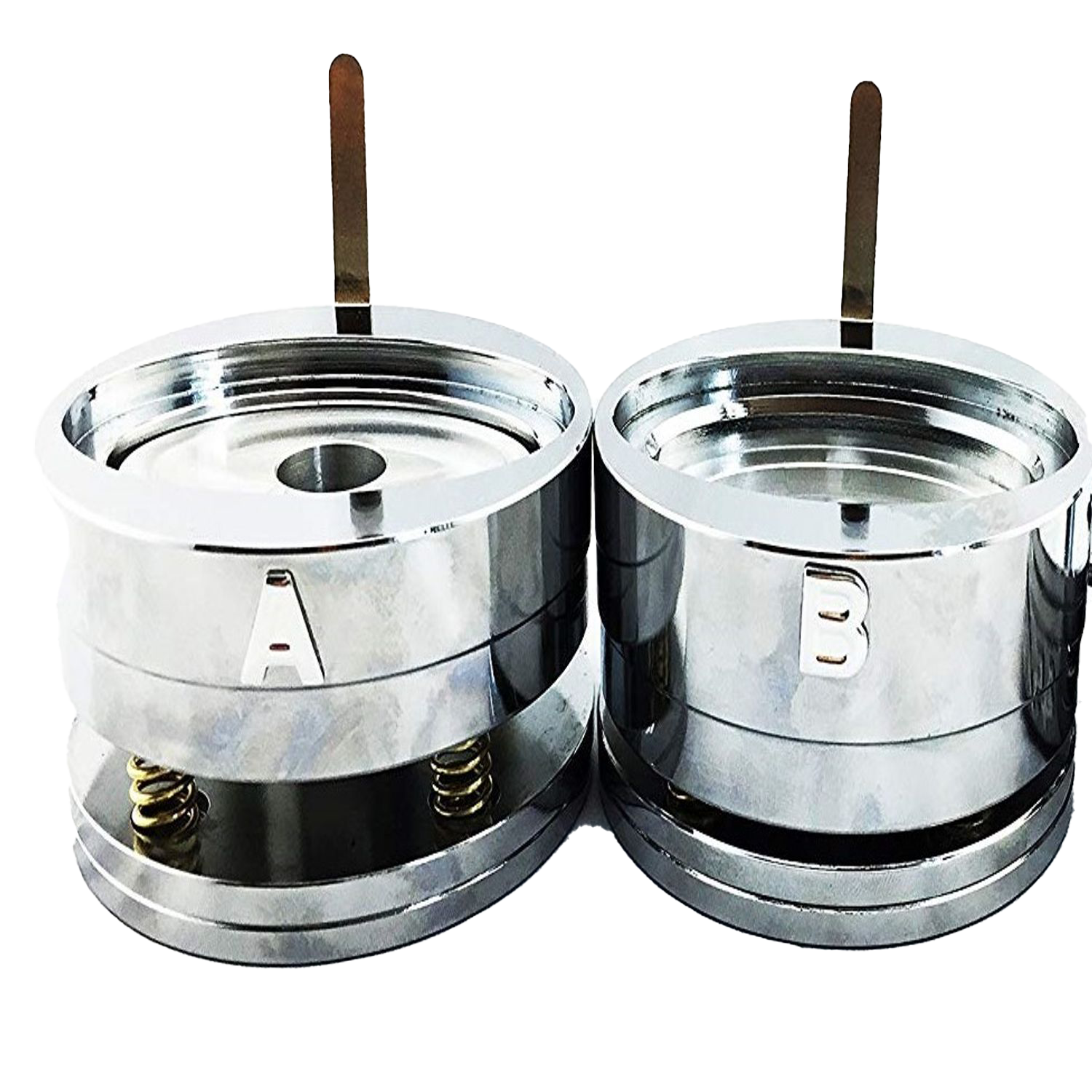 The mould works excellently with all standard badge materials including paper substrates, plastic films, metal foils, laminates, and protective coverings used in professional badge production.