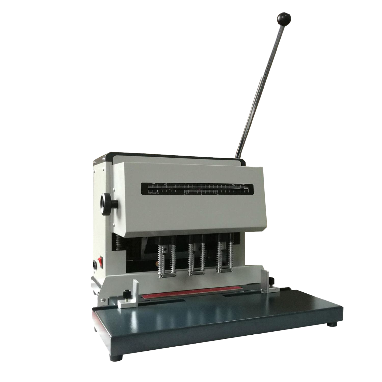 The oversized work plate accommodates A3, legal-size, and custom format documents while providing stable positioning for complex punching patterns and larger binding projects.