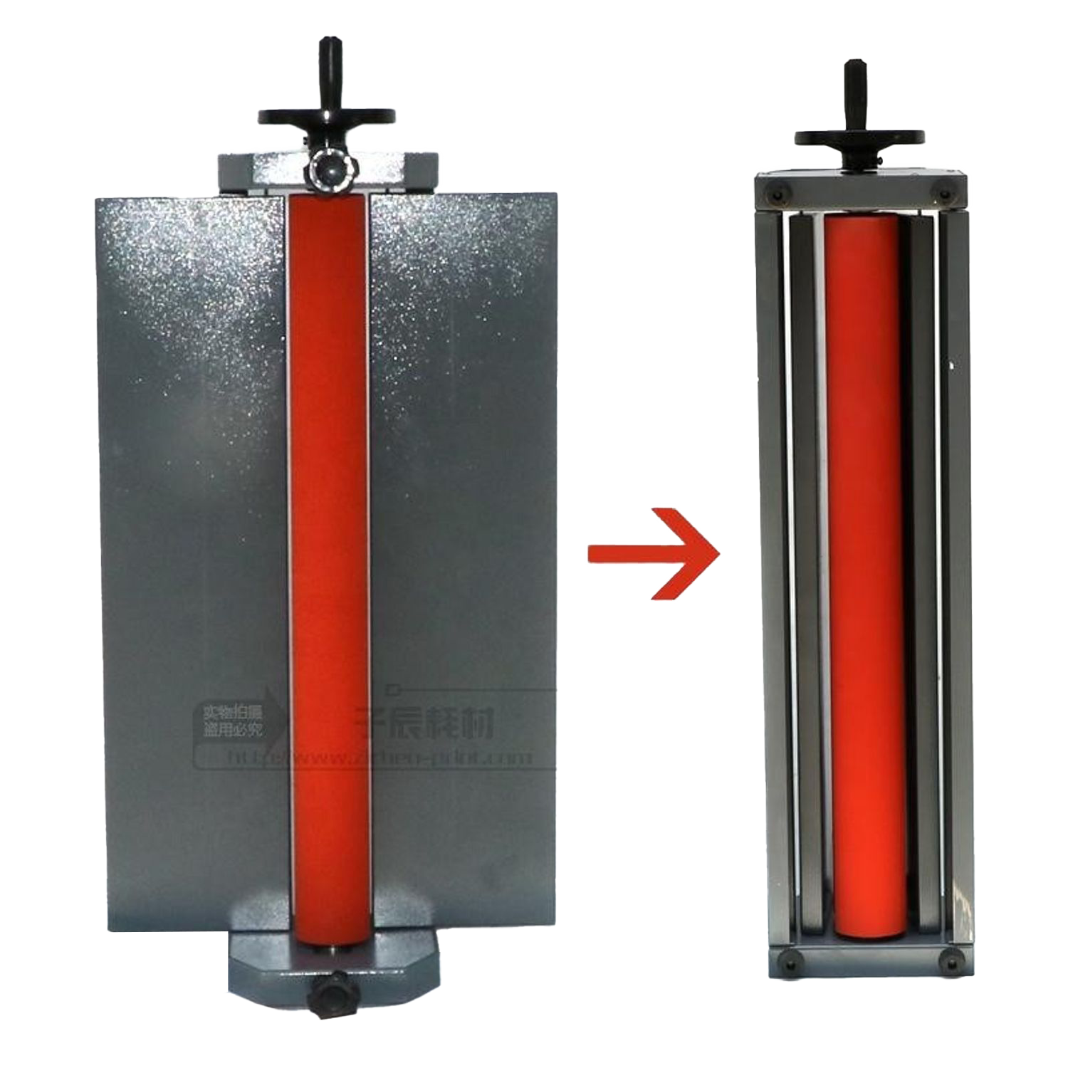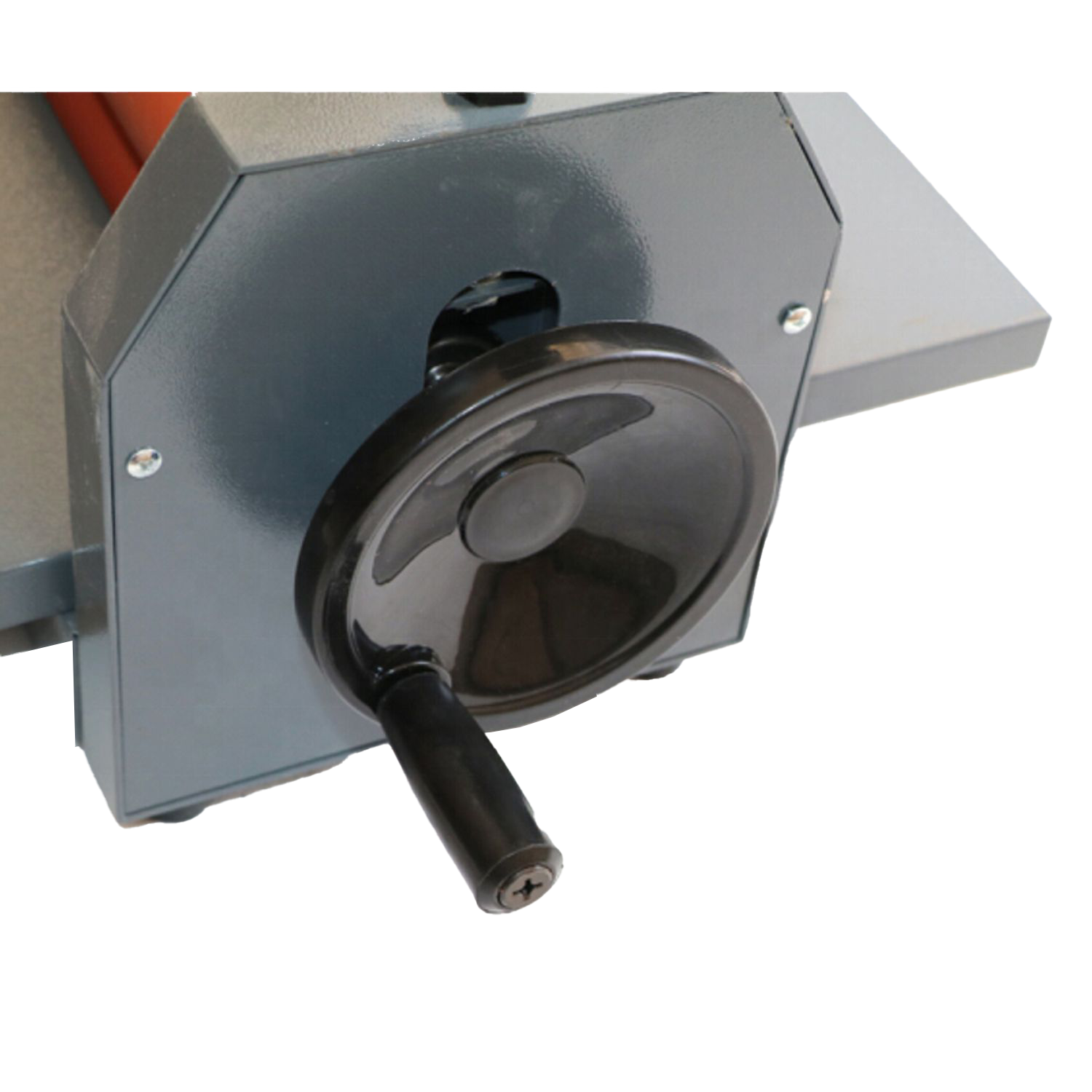 Simple maintenance includes regular roller cleaning, checking for adhesive build-up, ensuring smooth mechanical operation, and maintaining proper alignment. The hand-powered system eliminates electrical maintenance complexity.