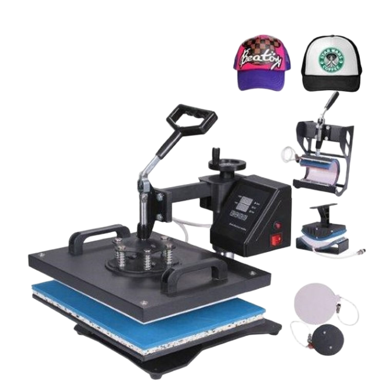 - Complete 5-in-1 multifunctional design includes flat press, mug press, plate press, cap press, and additional accessories for comprehensive sublimation printing capabilities